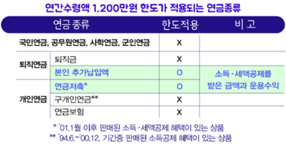 연금 수령액 1200만원 대한 자세한 내용은 아래를 참고하기 바란다. 간단하게 말하면, [퇴직연금 본인 추가 납입금에 대한 연금수령액] + [개인연금저축으로 인한 연금수령액] 의 합이 1200만원 이내면 된다.