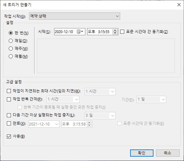 새로 만들기를 눌러서, 원하는 시간을 정해줍니다.